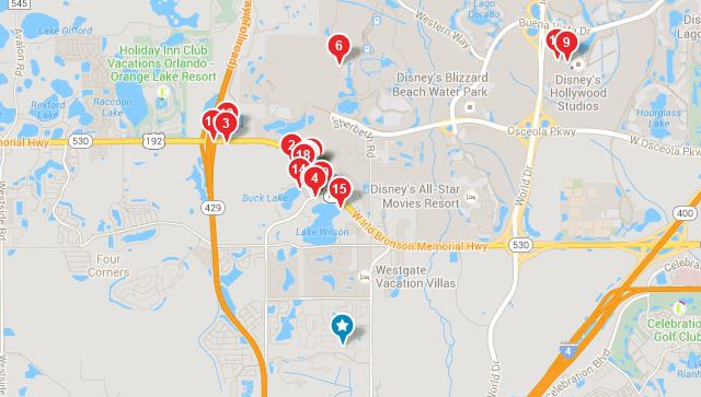 Closest resort to Disney parks, just 2.1 miles from the entrance to Disney World!